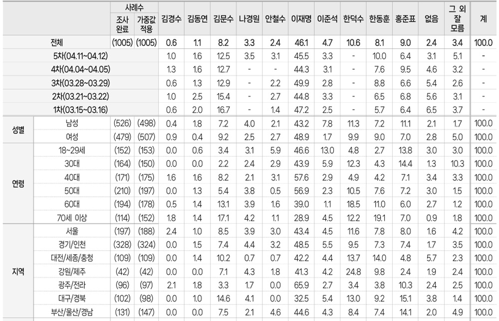 - 이재명 후보가 모든 조사에서 선두
